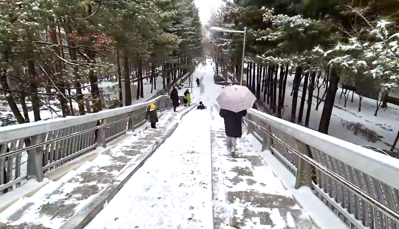 그저 하늘에서 내린 눈과 작은 비탈길만으로도 이렇게 행복해하는 아이들! 🤩
