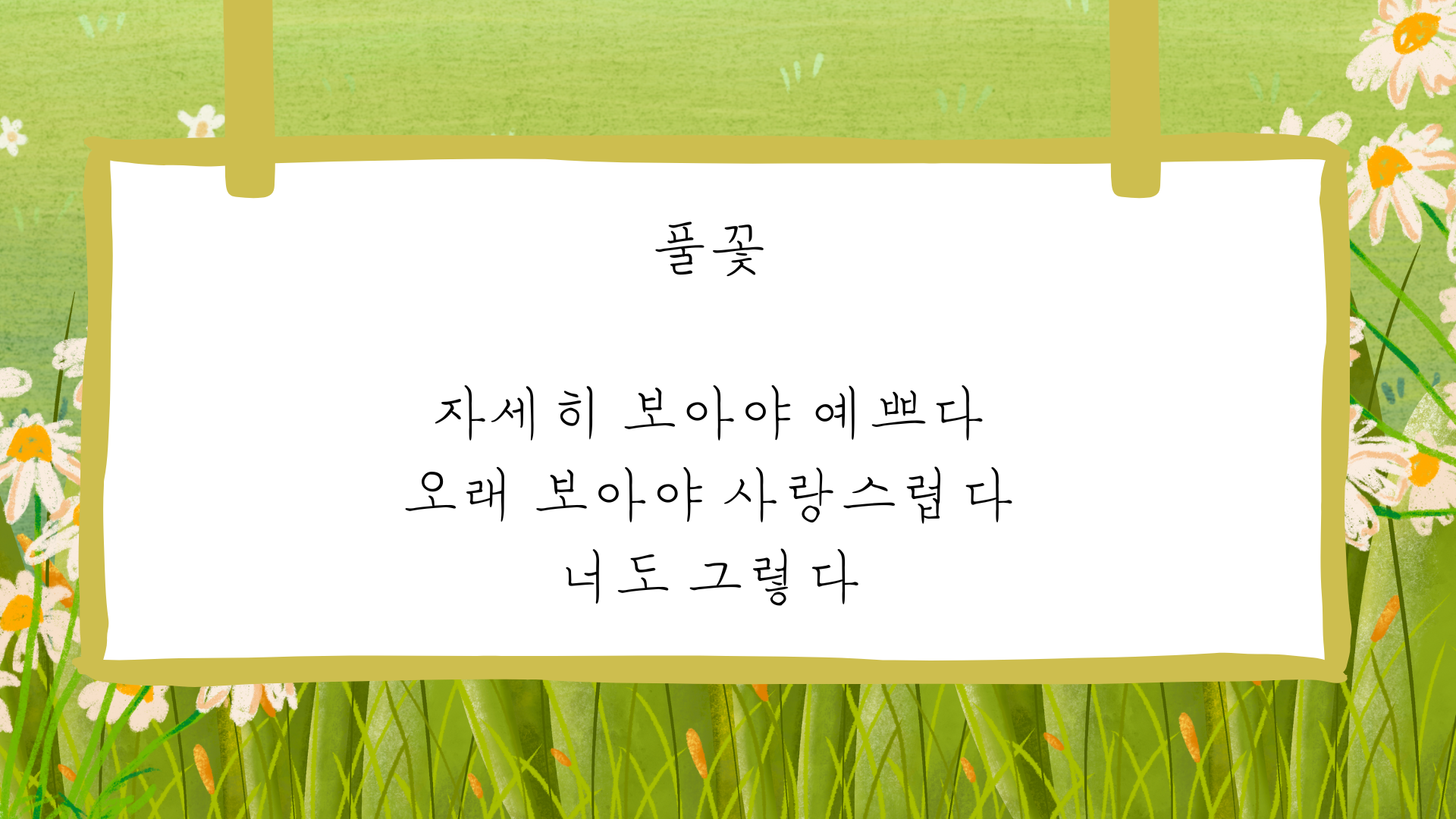 오늘은 나태주 시인의 ‘풀꽃’을 통해 우리 모두의 소중한 가치를 되새겨보려 해요. 🌱