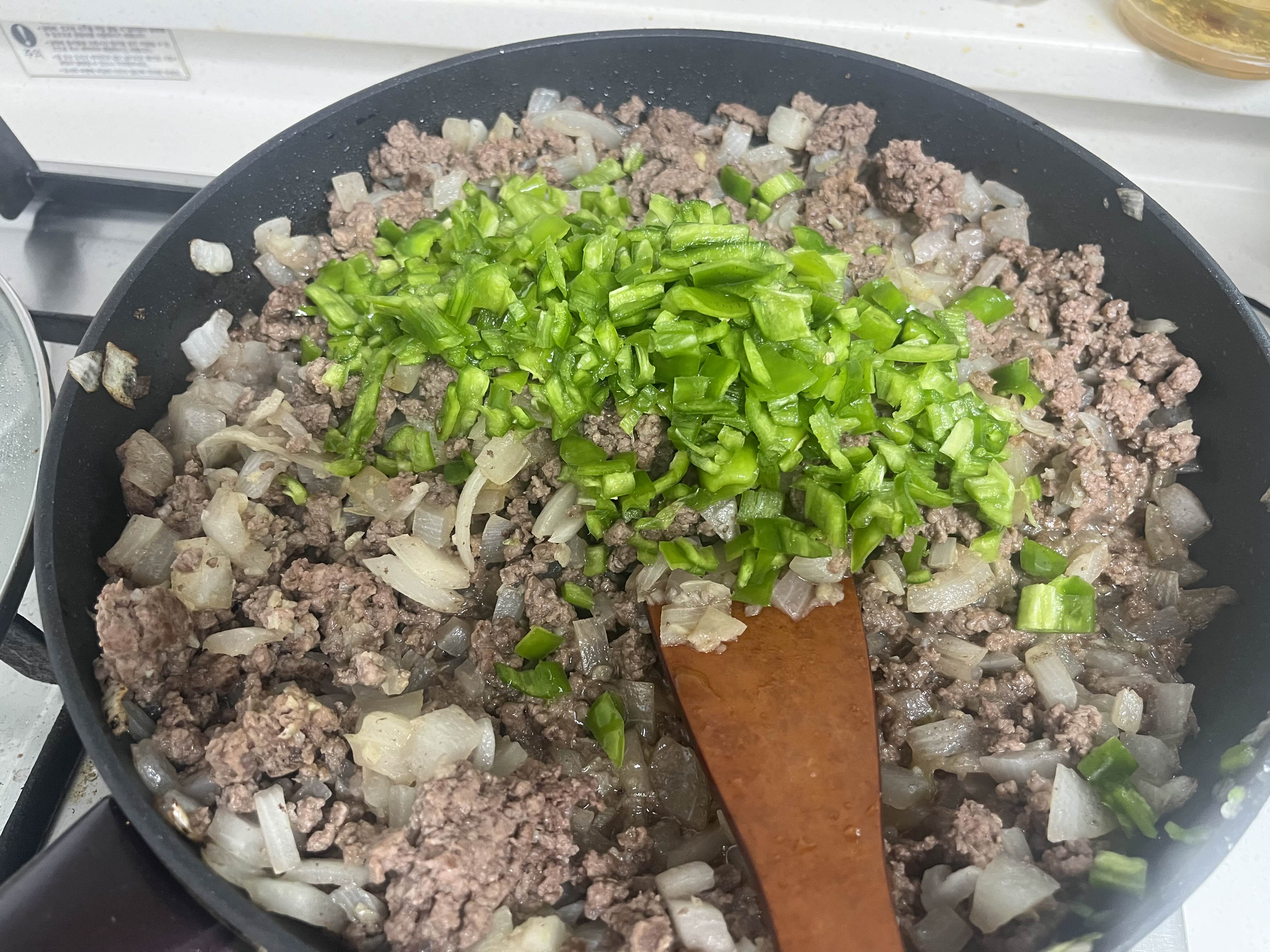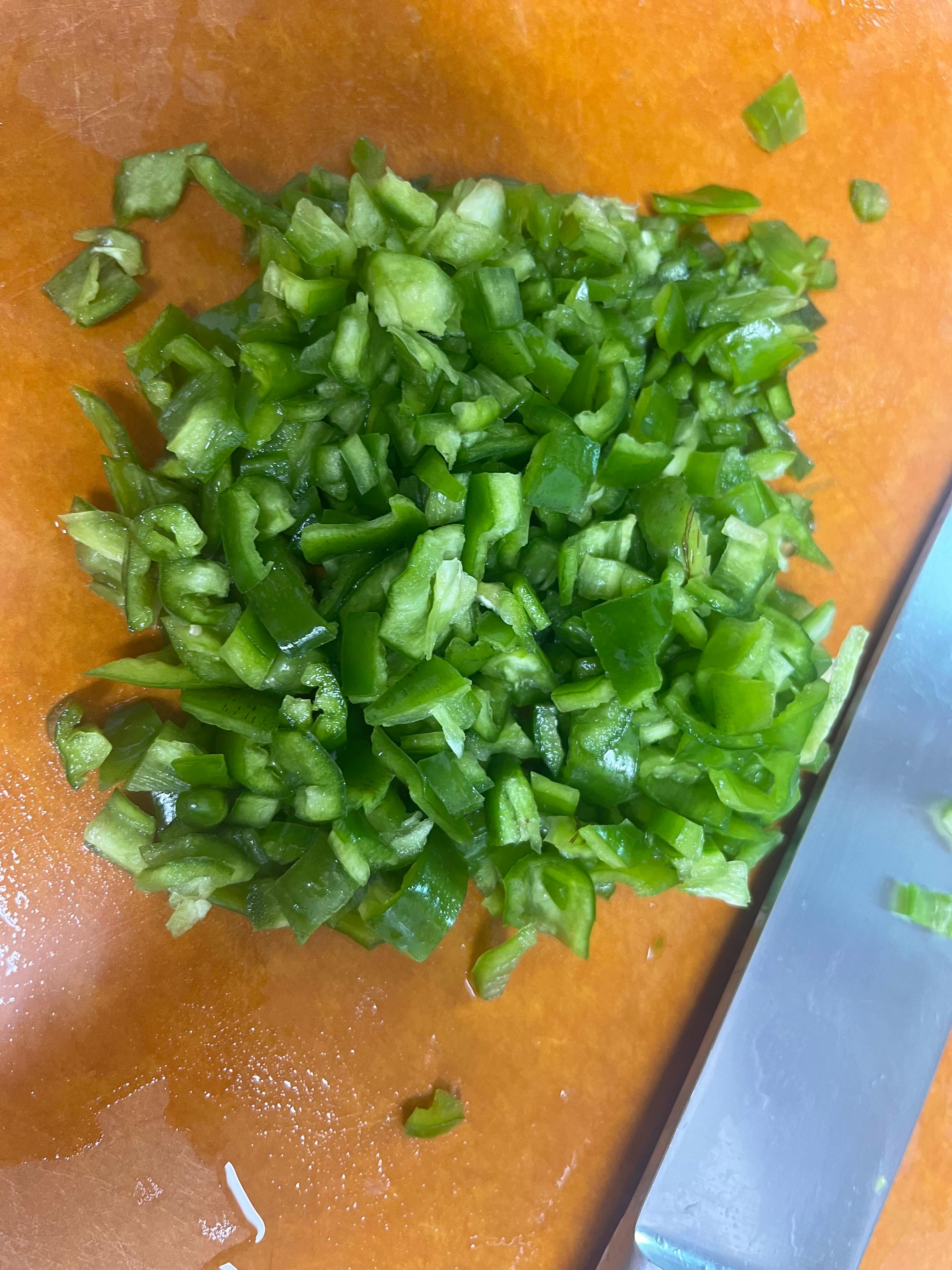 특별 재료로 어머님이 주신 오이고추를 씨를 빼고 잘게 썰어 넣었어요. 초록초록한 색감이 식욕을 돋구죠! 🌶️