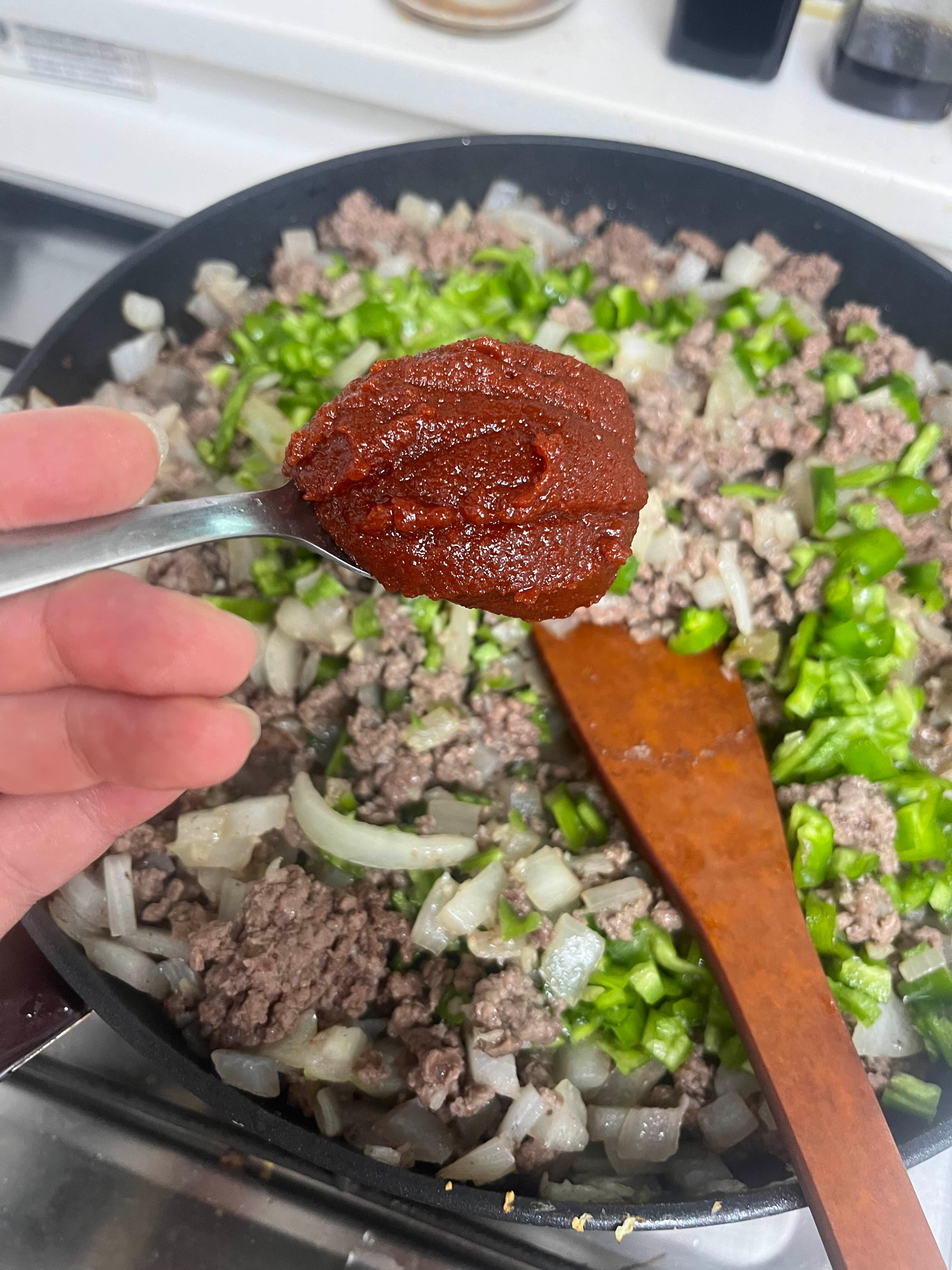안녕하세요, 오늘은 제가 특별히 변형해서 만든 마파두부 스타일의 소고기 고추장 볶음을 소개해드릴게요! 💝