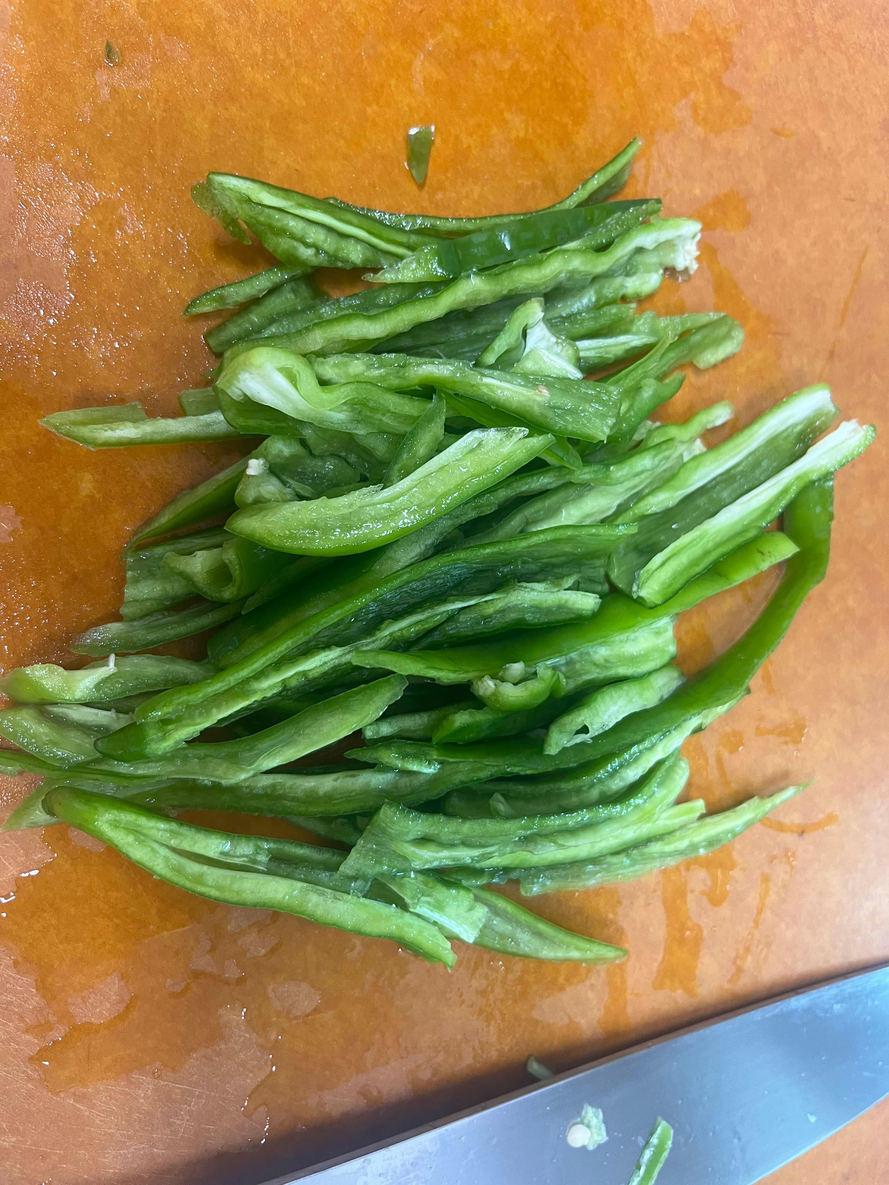 - 원래 마파두부에는 파가 많이 들어가야 맛있는데, 이번에는 오이고추를 넣어서 파는 조금만 넣었어요.