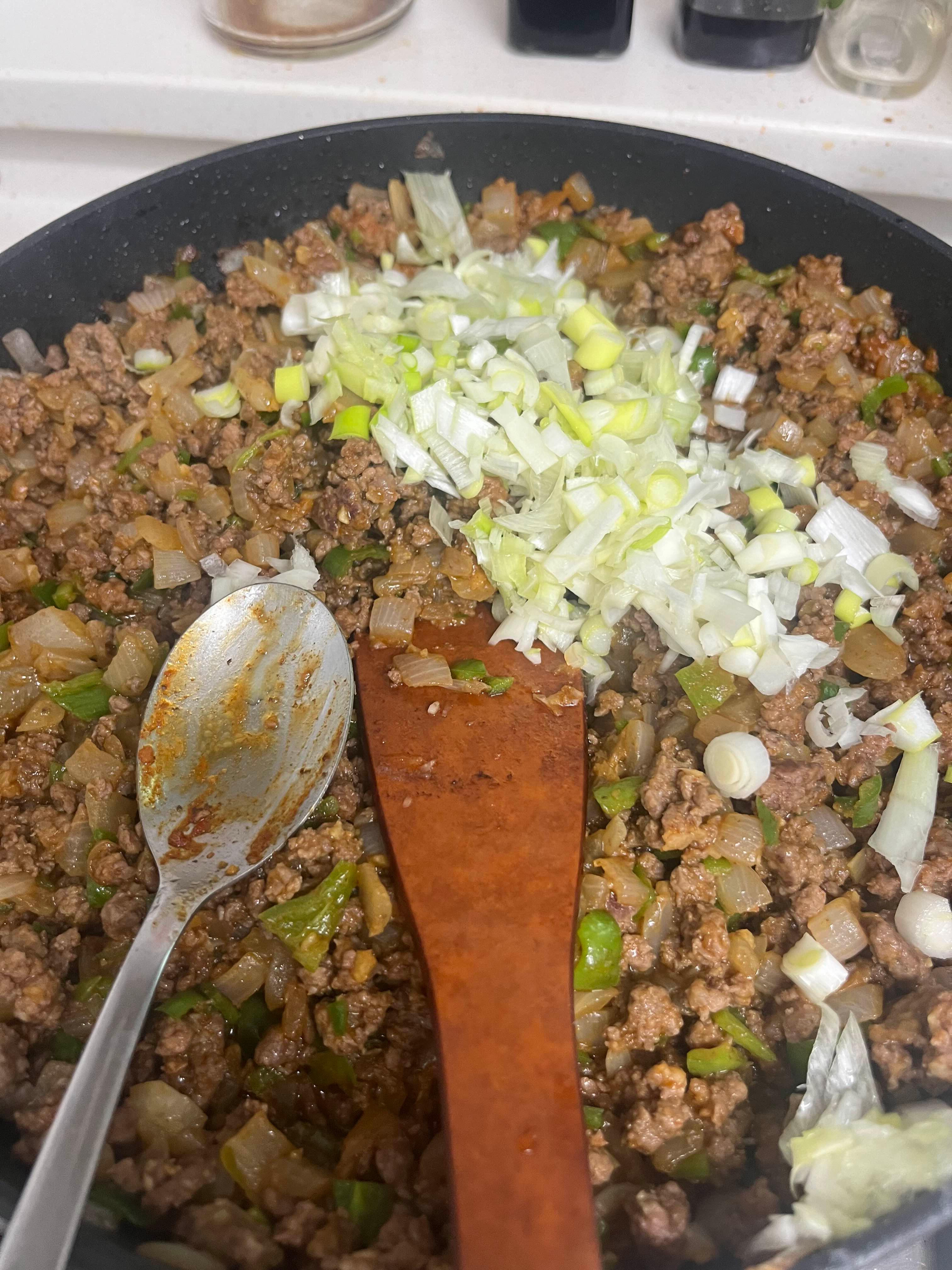 마지막으로 대파를 듬뿍 썰어 넣어주세요. 남은 열기로 파가 살짝 익으면서 향이 올라와요. ✨